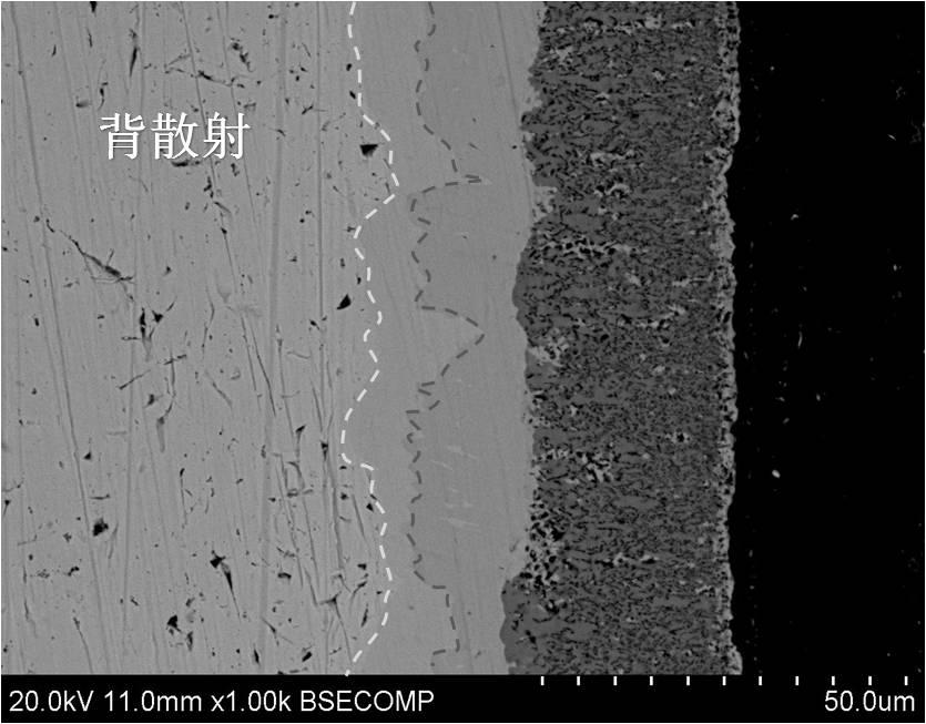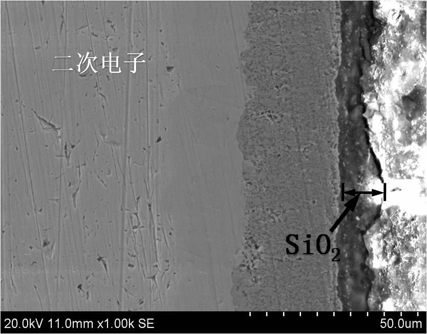 制备了一高温抗氧化涂层材料,材料样品进行氧化性能测试后镶样抛光看涂层的截面形貌,可确定涂层表面形成的是致密的SiO2层,而在截面形貌观察过程中,采用背散射和二次电子相对同一区域进行观察,发现在二次电子模式下可清楚看到SiO2层,但背散射状态下却无法观察到,请问各位其原因是什么? 上传了两张图片,分别是同一区域下的二次电子和背散射图片。 二次电子模式图片.jpg 背散射模式图片.jpg |
