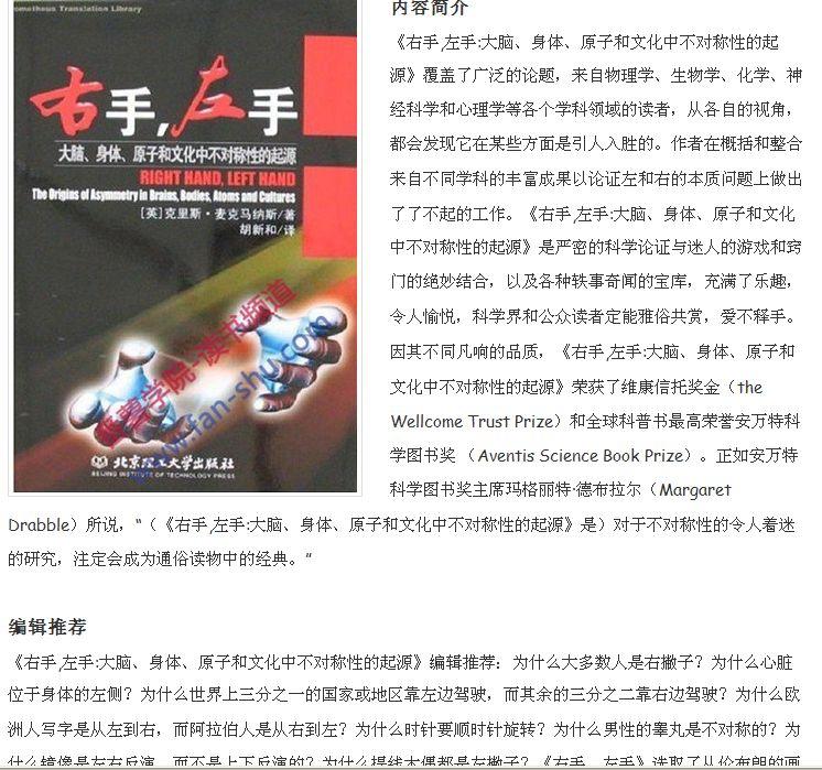 右手,左手:大脑、身体、原子和文化中不对称性的起源 高清版