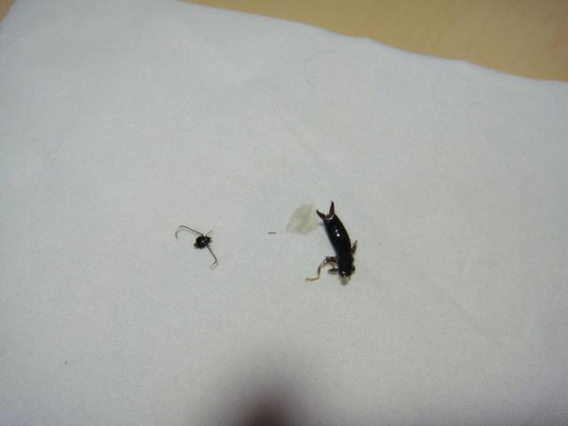 谢谢回复。不是蟑螂,蟑螂比较宽、比较扁吧?这个虫子比较苗条,但是有蜈蚣一样的头顶两个长触须,后面还有剪刀一样的尾巴,钳子一样,可不能被夹着,估计很疼。