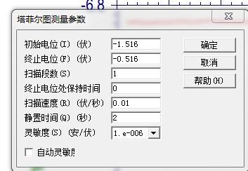 我是拿胶带封了1cm的面积做的,你说的还原电位是不是开路电位呀,这个电压的范围,是相对于开路电位+500mv,-500mv之间的。
