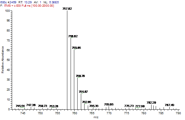 小弟纯化了一个小肽,接着做了液质,想知道分子量该咋个计算啊。俺新手,对这方面第一次接触,看了一些文献也不怎么懂。请求各位大神指点迷津! 求帮分析下,给些参考文献也行啊,任何建议都非常欢迎,。下面是一级质谱图