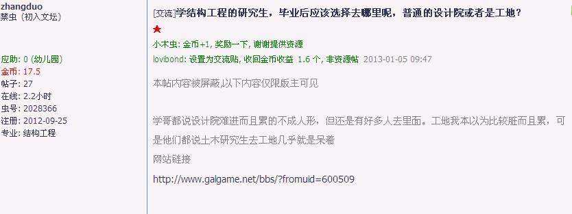 对IDzhangduo全论坛永久禁止访问 在可查到的帖子中,基本上所有将帖子都包含其他网站宣传(https://www.galgame.net/bbs/?fromuid=600509 ),详见个人主页https://muchong.com/bbs/space.php?uid=2028366&view=post 下举一例 |