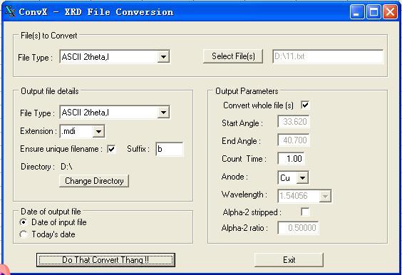 ÎÒÆäʵҲÓöµ½Á˶ÁÈëÊý¾ÝÖ®ºó»³öµÄͼ²»¶ÔµÄÇé¿ö£¬¶øÇÒ²»ÖªµÀÊÇʲôÔÒòÔì³ÉµÄ¡£ÒÔÏÂÊÇÎÒ×Ô¼ºµÄ½â¾ö·½°¸£¬±È½ÏÂé·³£¬µ«ÊÇÎÒµÄÄÜÁ¦Ò²¾Íµ½ÕâÁË ![]() 1.ÏÂÔØXRDfileconversion.exeÈí¼þ£¬http://muchong.com/bbs/viewthread.php?tid=1008028 2.´ò¿ªÈí¼þ½«ÄãµÄÔʼtxtÎļþµ¼È룬עÒâÖ»ÄÜÓÐÊý¾Ý²»ÄÜÓÐ×ÖĸºÍÎÄ×Ö£¬°´ÏÂͼÉèÖòÎÊý£¬µãת»»µÃµ½mdiÎļþ£¬È»ºóJADE¾Í¿ÉÒÔÕýÈ·¶ÁÈëÁË¡£ convX.JPG |