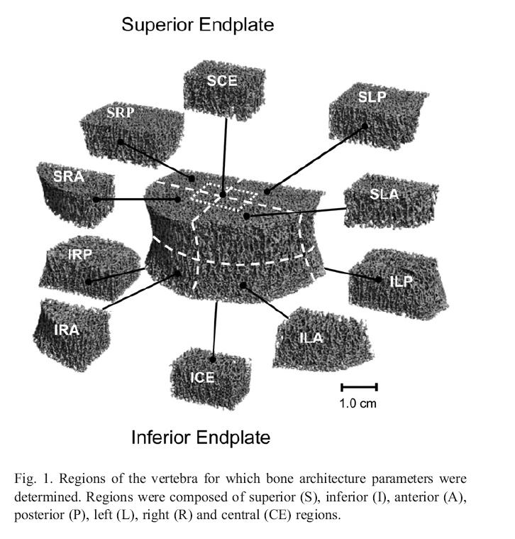 现在的问题是在micro Ct上面分析的时候,我想把椎体做一个区域划分区域划分,这样可以保证每个标本的区域划分标准是一样的。 在Scanco的软件上如何进行这个区域的划分?最主要的是如何定义椎体上平面的3条线的位置?(将椎体分为4个区域的纵横两条线,将椎体分为上下区域的一条线)。需要保证每个椎体的定义标准是一样的。 ct.jpg |