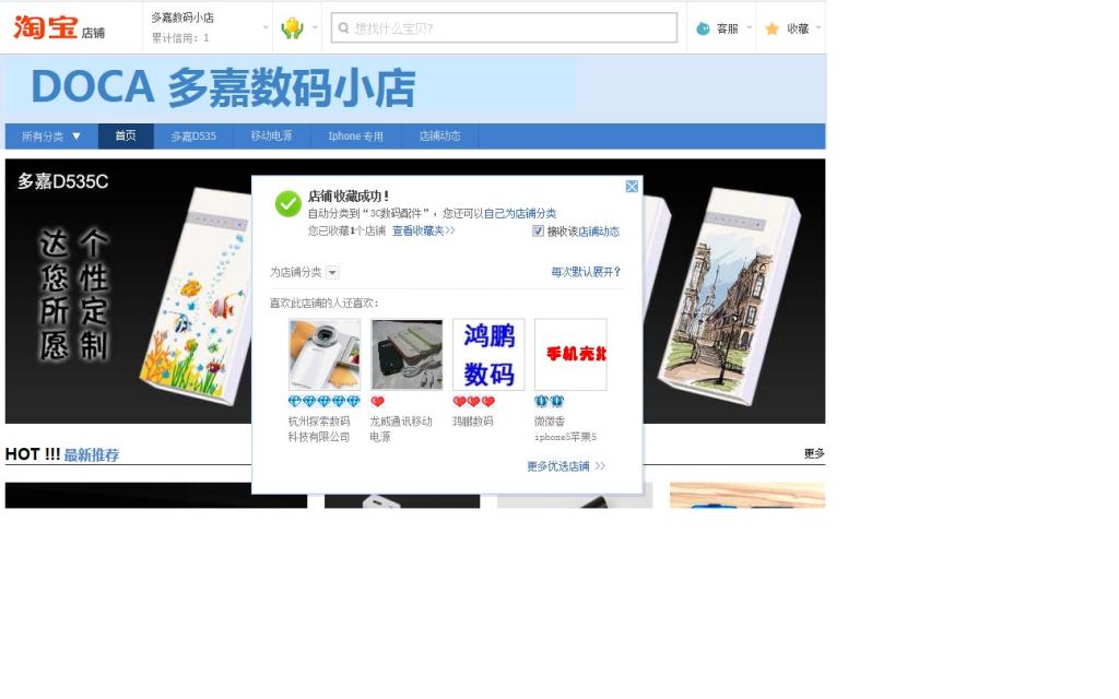 淘宝小店刚开业。希望大家多多支持 店铺名:多嘉数码小店 地址:http://tracel.taobao.com/ 希望各位虫友多多支持 收藏店铺 5金币 收藏多嘉D535 5金币 购买任何宝贝有优惠 10金币 |