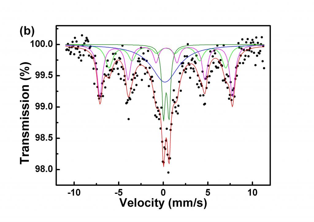 感谢参与,应助指数 +1 SAN_TIAO_YU: 金币+10, ★有帮助, 谢谢您的意见!谱线的质量的确不好。这是在室温下测得的结果,样品为一种复合结构,铁的氧化物含量较低,大小为6 nm左右(TEM结果)。XRD的峰比较弱,尖晶石结构,不容易区分这两种铁的氧化物,所以用穆谱来分析成分。另外请问:如果用在文章中,能否说明问题? 2013-01-15 11:37:29