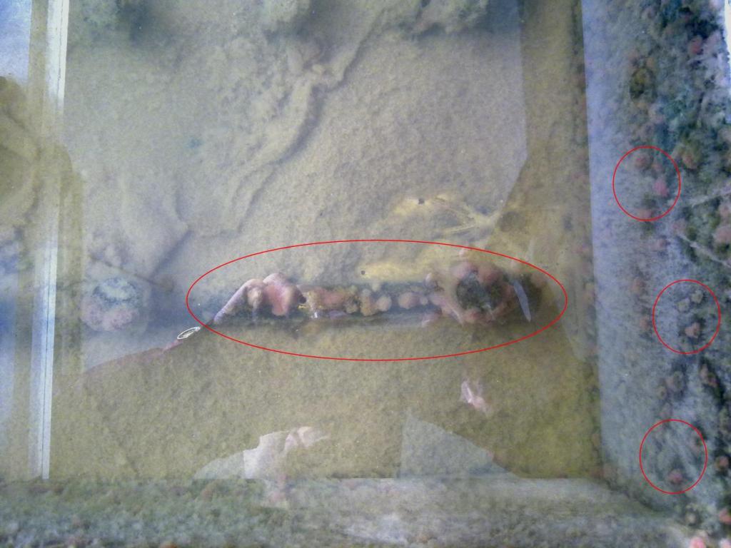 各位认认这是啥 红的一团 水深30cm 蛮清的 发现底部曝气管上有一团团红的东西 器壁也有 处理的豆制品废水 普通的sbr法 装置是长方体 底部宽40cm 长80cm 深40cm 水温度6度 红红的.jpg |