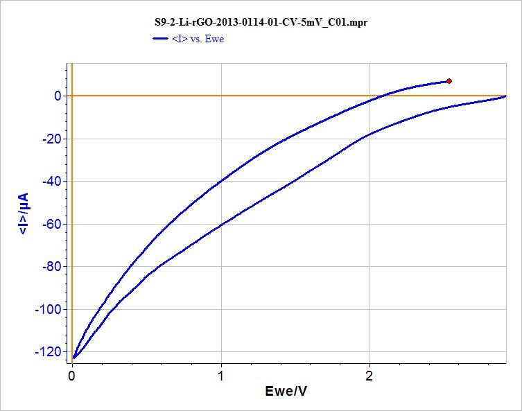 应该没有问题,氧化石墨本身的电位比石墨要高,在电位很高处就开始反应,CV曲线类似电容器的样子。要确认回路中没有接错,没有引入高电阻。多次扫描应该会重合,曲线也会好一些。试试降低扫速看看。因为金属锂的极化比较大,所以两电极扫的曲线与三电极扫的曲线差距很大的。三电极要好。