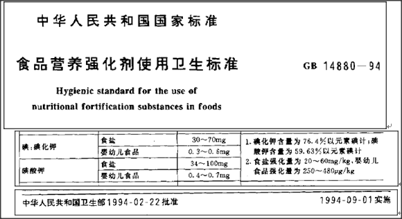 国务院发布的《食盐加碘消除碘缺乏危害管理条例》国务院令第163号,颁布日期:19940823 实施日期:19941001,该文件规定: