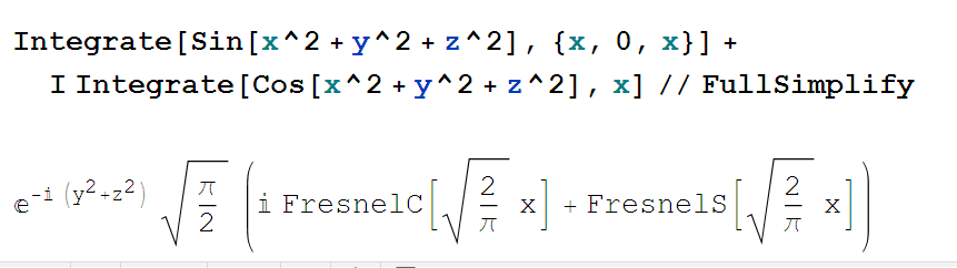 exp(i*sqrt(x^2+y^2+z^2))dx