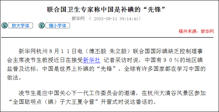 中国强制全民补碘受到联合国多个组织表扬的秘密
