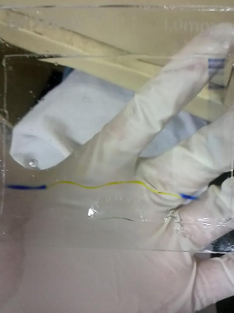 各位哦,帮忙看看 这是啥原因,同时1个槽里跑2块板,1块正常,另1块跑到下面成这样了,为什么这块跑到中间的时候还正常 跑到下面就开始翘胶, 溴酚蓝不知道是不见了 还是变成黄色了 胶都翘起来了,上图(样品是偏酸性的,但加PBS等体积稀释了。)