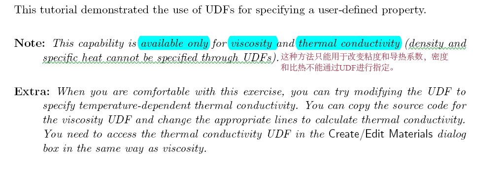 版本问题,至少6.3.26可以,如下: Some of the properties you can customize using DEFINE_PROPERTY are: density (as a function of temperature) viscosity thermal conductivity absorption and scattering coefficients laminar flow speed rate of strain user-defined mixing laws for density, viscosity, and thermal conductivity of mixture materials UDFs cannot be used to define specific heat properties; specific heat data can be accessed only and not modified in FLUENT. 回到原贴的问题,楼主应该将坐标问题转变为温度问题,如将不同高度patch不同温度,然后修改对应的UDF。 |
