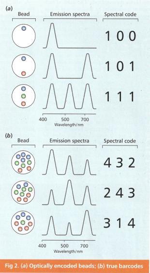 All the coding schemes described herein are afflicted by one handicap or another. Thus while one can only marvel at the baroque elegance of Still’s original coding scheme, he and his colleagues must have sweated blood to get it to work. While less unwieldy, the metallic and optical barcodes, do not, as Still’s scheme does, inextricably link the code to what is on the particle. The digital DNA codes4-6 (see Box) are prone to contamination from templates not intended to be present in the labelling mixture. And so on. In short, there is plenty of room for other ideas.
