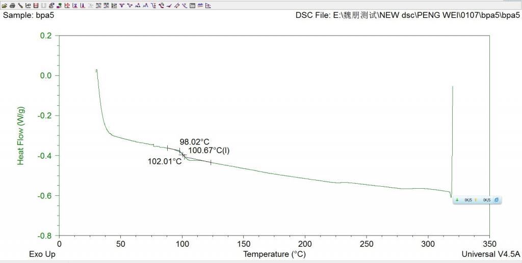 | 如题,用TA公司的universal analysis 画的dsc 图,导出数据后,和图中的数据不一样,然后用origin画图,明显和用分析软件画的不一样.附图中dsc曲线是用分析软件画的,后面是导出的数据,第一列是温度,第二列是热流,如图所示155度时的热流是-0.55左右,而数据中却是-1.53.很困惑啊 |