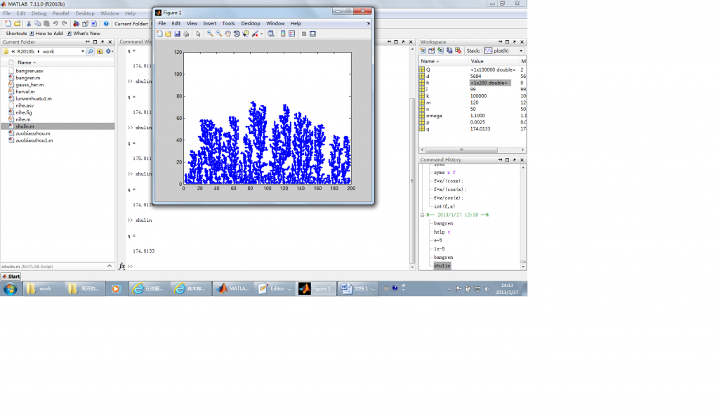 我是一只小小虫,刚刚入行不久,还请高人指点啊。 我不是做这个方面的,但是最近想通过这个模拟一下,不过我对M语言一窍不通哎,还请高人赐教哈。起初我们做的是DLA模型在点电极上的模拟,现在呢我们是想要将其应用到线电极上进行模拟。我对这个模拟已经纠结很久了,起初是从头开始学习matlab,后来发现学了很久都不能解决这样的实际问题,所以就上小木虫来请求指点了。详细的请看我上传的附件哈 |