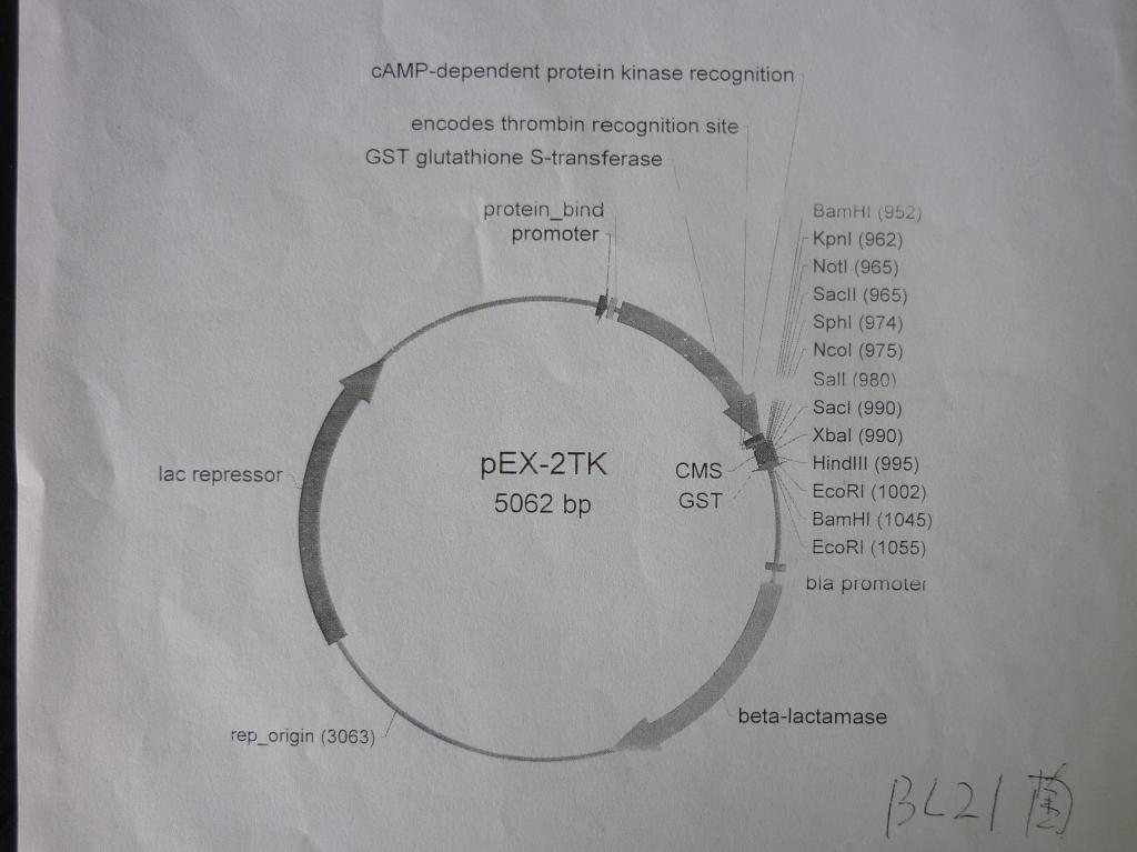 你这个图貌似应该叫pGEX-2KT吧,我这里有可能是你的质粒图谱