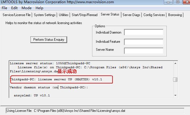 2)进行FLEXlm LMTOOLS UTILITY 设置,也显示成功,如图2,图3;