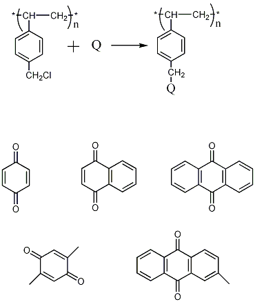 自己是小硕一枚,所做课题是环境与材料的交叉学科,最近按照文献做出一类聚合物,无奈自己知识有限,对该物质的命名不清楚,查文献只是对苯醌的聚合物做出命名,无奈请坛子里的大牛帮忙命名。 上面的反应式是氯甲基化聚苯乙烯与醌(以Q代替)反应,下面是五种醌,分别为苯醌,2,5-二甲基苯醌,萘醌,蒽醌。2-甲基蒽醌 求命名.gif |