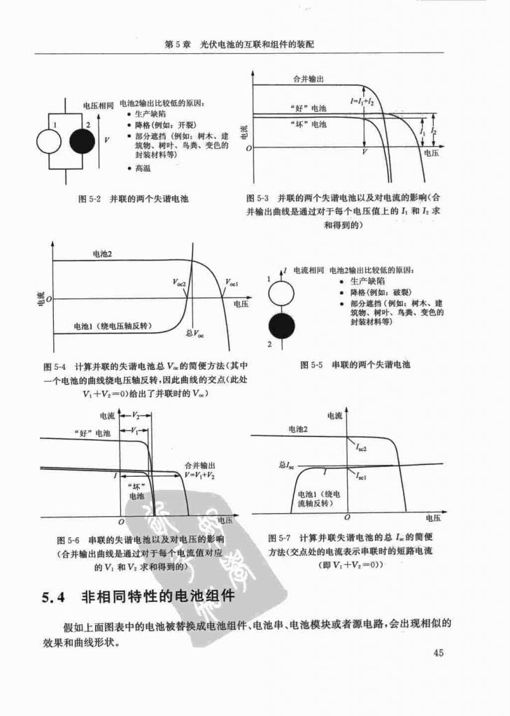 大家好,最近在研究光伏电池的应用。我在一些文献上看到当光伏组件中部分电池被遮挡,或者说组件中部分光生电流与其他电池不相等。此时计算组件输出性能时,电流服从取小的原则。我想知道这一原则的使用是否有什么前提。是否组件的短路电流应为光生电流最小电池的短路电流。可有文献出处。