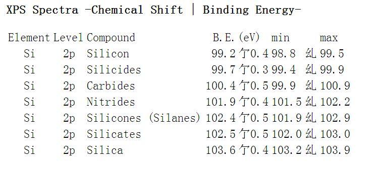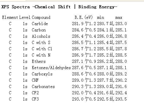 【求助】XPS中各种元素每种价态的结合能?