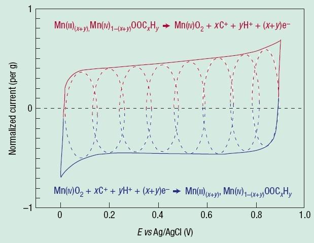 | 金属氧化物的赝电容可以提供远高于双电层电容的能量存储能力,赝电容的能量存储是基于金属氧化物的氧化还原过程价态变化所存储和释放的电荷容量, 可最近看到的关于二氧化锰的超级电容器材料其循环伏安曲线没有看到氧化还原峰,那怎么说明有赝电容呢?相当不理解,求大虾详细赐教! |