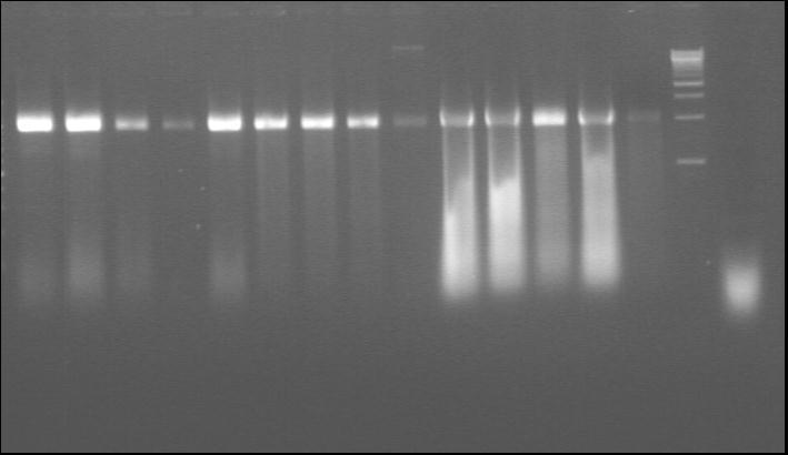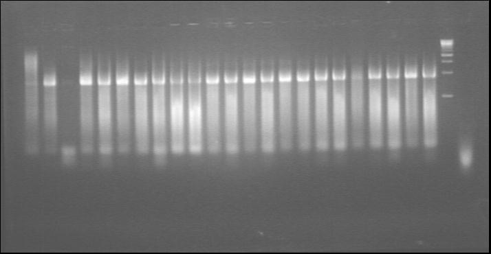 我师姐做这个超声波破碎的,我把她拉过来问了她,她说: 1)破碎完之后 就是蛋白的混合物,你要纯化(目的蛋白上带个标签比如GST、HIS,过柱子纯化)后再做PAGE。 2)你的图1和2是琼脂糖胶 然后紫外拍照 是吧,好像流程不是这么做的。一般超声破碎完 蛋白PAGE胶->考马斯亮蓝染色,看看蛋白 是否表达,如果表达:超声破碎完的蛋白 纯化->PAGE胶->考马斯亮蓝染色,如果蛋白表达量低不足以 到染色的最小敏感值,那就增加上样量,无效的话再转膜做WB(不过你说你的蛋白很大 不影响,这个我不懂 就不做评论了) 3)你的目的蛋白 是多聚体吗?你查一下各个单体之间的作用力是什么,四级结构相互作用需要非共价键,包括:疏水键(SDS可破坏)、盐键、范德华力、二硫键(被loading buffer中巯基乙醇或DTT破坏)。根据你的蛋白非共价键 在配置上样buffer和胶的时候注意 放什么不放什么,或许就能检测到 多聚体了 |