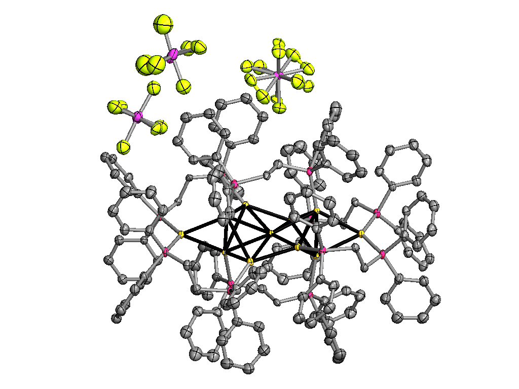 Chem Comm上关于Au晶体的培养和制备的文献 目前制备含有零价贵金属原子的晶体已经不是什么困难的事情了。 实验步骤 I. Experimental Procedures A. Synthesis of [Au11(Ph2P(CH2)2PPh2)6](SbF6)3 (1-(SbF6)3) To an ethanolic solution (75 mL) of Au2(Ph2P(CH2)2PPh2)Cl2 (172.7 mg, 200 μmol) was added an ethanolic solution (5 mL) of NaBH4 (15.1 mg, 400 μmol), and the mixture was stirred at 0 °C. After 1 h, NaSbF6 (excess) was added to the reaction mixture, which was then mixed with acetone (25 mL) / ethanol (100 mL). The resulting precipitate collected by filtration was washed with ethanol to give 1-(SbF6)3 as a dark green solid (32.1 mg, 17%). Crystals suitable for X-ray analysis were grown from ethanol/dichloromethane (1:1). Elemental analysis: calcd (%) for 1-(SbF6)3 (C156H144Au11F18P12Sb3): C 35.59, H 2.76; found: C 35.46, H 2.99; no nitrogen and chloride were found. http://pubs.rsc.org/en/Content/ArticleLanding/2012/CC/c2cc30251a Au的晶体.PNG GA.gif[ Last edited by 11900490 on 2013-2-1 at 14:44 ] |