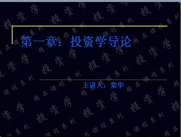【课件】投资学--(中央财经大学)