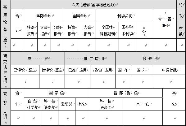 | 博士点基金结题报告中有一项“研究成果”,前面有一个表格要登记研究成果的信息,包括:成果名称,主要完成者,著者名次,组织评价、鉴定单位及日期,授奖单位、奖励名称及日期、获准专利国别、类别及专利号。后面还有“研究成果简介”页,是相对详细的记录研究成果信息,包括:课题名称,课题编号,课题完成时间,成果名称以及研究成果简介(500字)。我现在的疑惑是:是不是只有经过专家组织鉴定、评价、得奖的成果或专利才能算成果(发表论著另外有统计,此处不包括论著)?如果没有这些的话,是不是“研究成果简介”页的内容就不用填写了?请各位有经验的专家能给点建议,十分感谢! |