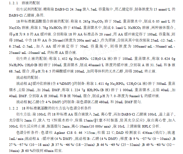 氨基酸自动分析仪和柱前衍生高效液相测氨基酸的一些问题