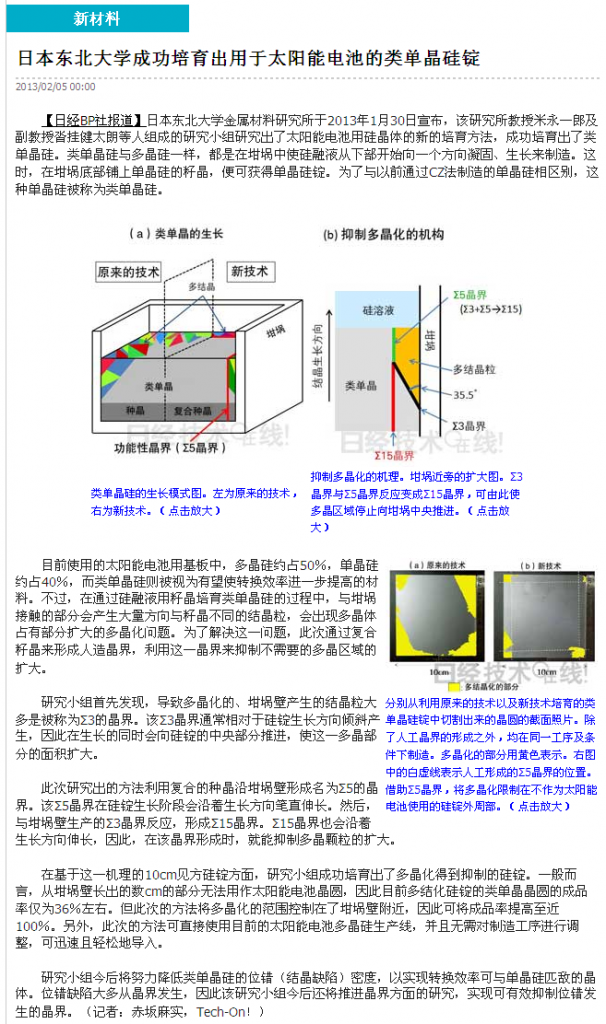 【ZT】日本东北大学成功培育出用于太阳能电池的类单晶硅锭 已有2人参与