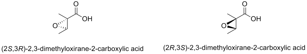 分离得到的天然产物,结构中有个部分的立体化学无法确定,水解后做GC能够解决,还请帮忙查查这对异构体的GC条件和出峰时间,谢谢啦!!! (2S,3R)-2,3-dimethyloxirane-2-carboxylic acid (2S,3R)-2,3-dimethyloxirane-2-carboxylic acid 结构.png |