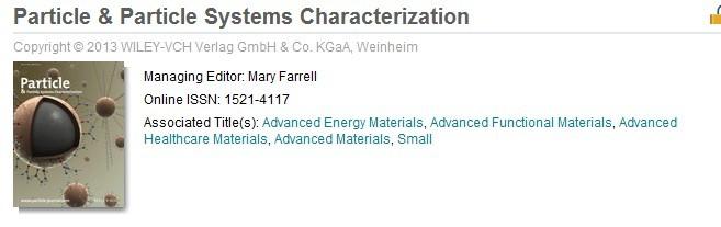 Particle & Particle Systems Characterization, 2013年全新改版,列入Adv materials系列,但是不知道定位如何,将来能像Small那样吗?第一期的论文档次还是不错的。 journal-family-e1358330653266.jpg |