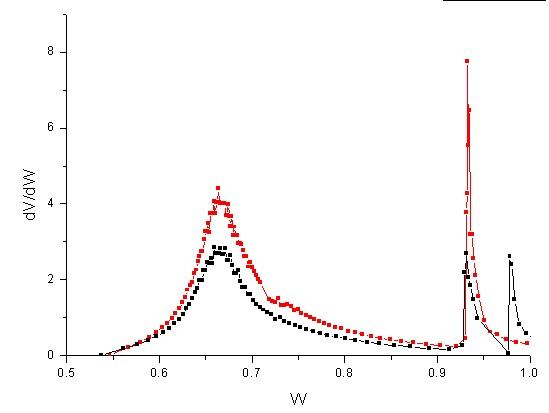 我分别用室温扩散法和水热法做出的同一种晶体材料。 经XRD确认特征峰一样即属于同一种物质,只是各个峰的强度不一样。 BET测试得出两者的吸附脱附曲线类似,属于第I种类型,即属于微孔材料。比表面积也相差不大,但是用dV/dW-pore diameter作图,得出的图形见附录。各位大侠,这种情况该怎么解释呢?谢谢! OMG9A[`QO_$2DXA8_[]SGBS.jpg |