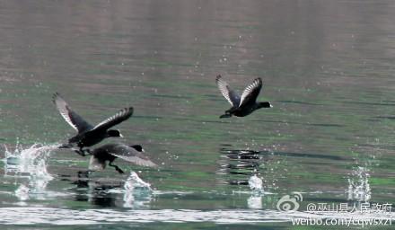 家住三峡中的巫峡,这是朋友在小三峡船上遇上的。 10多只从没见过的像鸭子一样的水禽在河面嬉戏。这种水禽全身通黑,眉头和嘴(其嘴比鸭子嘴要尖)为白色,翅膀展开后,边缘呈灰白色。 哪位虫友鉴定一下是什么品种 谢谢了! 72471ea4jw1e1xdan8o5tj.jpg |