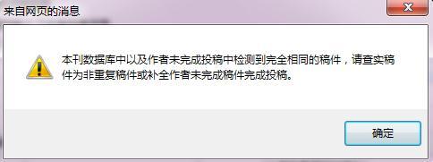 之前投了篇中南大学学报的,退稿了,叫我修改后再投。现在在填写完作者信息再点下一步时就出现了如图的提示,叫我查实稿件为非重复稿件或补全作者未完成稿件完成稿件,我怎么查实呢。 360截图20130219171504629.jpg |