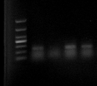 下面的图片是我扩增图片,这四个是一组温度梯度,可是第二个没有条带,温度从左到右分别是48,50,52,54度,我应该用哪个温度?我已经做过很多次了,都是这个结果
