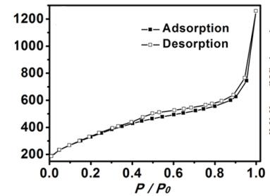 是否可以说迟滞环是从0.4-1 p/p0? 可以说得通,不过滞后环不够明显。 孔径分布测出来是2.1 nm和50-100nm. 但是SEM和TEM只能看到50-100nm的孔, 显微镜照片没有统计学意义。请以吸附测试为准。 是哪个范围的孔对迟滞环起作用呢? 显然,你这里的滞后环是由介孔形成的。 计算的比表面积1000多,是2.1 对他的贡献大,还是50-100的大? 从图上看,第一个点吸附量就达到200,所以估计是微孔贡献很大。不过请你去做微孔区的测试才好有个定量的结果。 |