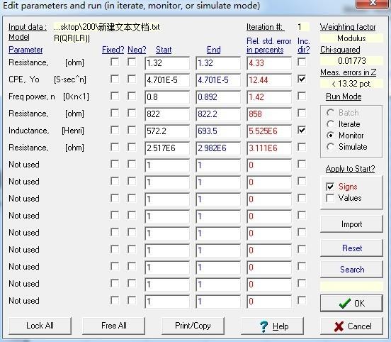 下面是我一组阻抗拟合结果,等效电路选择的是R(QR((LR)),请问下结果显示中,哪个表示溶液电阻Rs?电荷传递电阻Rt?电容Cd? 另外,请问这个拟合结果算理想不?还是需要再重新拟合?速求,谢谢! 2.jpg |