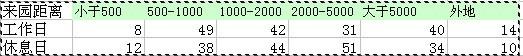 用调查问卷的方法统计了某公园多名游客来园距离,并按照不同距离区段统计了人数,数据格式见附件,请高手指教如何统计分析工作日与休息日游客来源距离是否存在差异?谢谢。