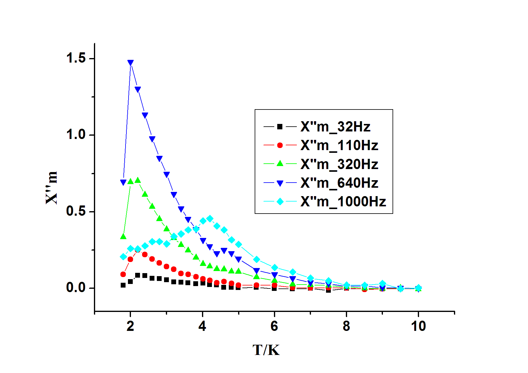 各位牛人, Ni-Dy一维链的交流结果如图,能用吗?2K以下的点是怎么回事?为什么只有1000Hz有峰? 还需要加1000Hz直流场测试交流吗?需要扫频测试吗?需要磁晶各向异性测试吗?一维链还需要哪些测试啊? 盼大牛们的指点,谢谢谢谢! Graph1.GIF |