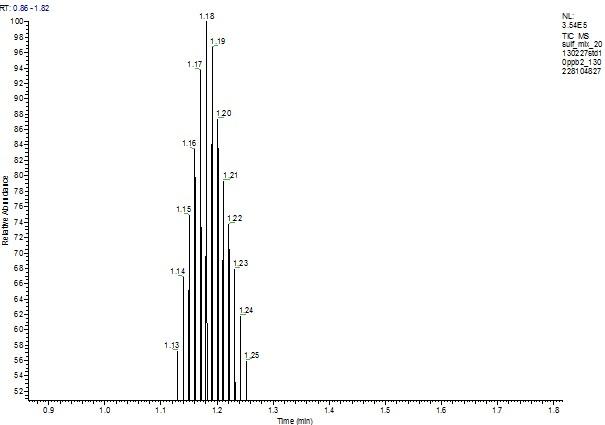 这个TIC的表明了您设置质谱的扫描时间太长了,会损失很多点的。每个峰的点应该不低于10个,每个离子扫描时间不低于200ms就可以了。