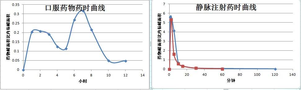 我做某先导化合物的药动学研究,这个化合物脂溶性较大,得到大鼠口服和静脉注射的一些数据,是否有经验的同学可以帮我大概分析下这个药物的药动学特征和开发前景呢?谢谢。 图中看出口服出现双峰,而静脉注射在10分钟以内就急剧下降。组织器官分布很大吧,毕竟脂溶性比较大。。 J507_$~{1~104D]X{JWV792.jpg |