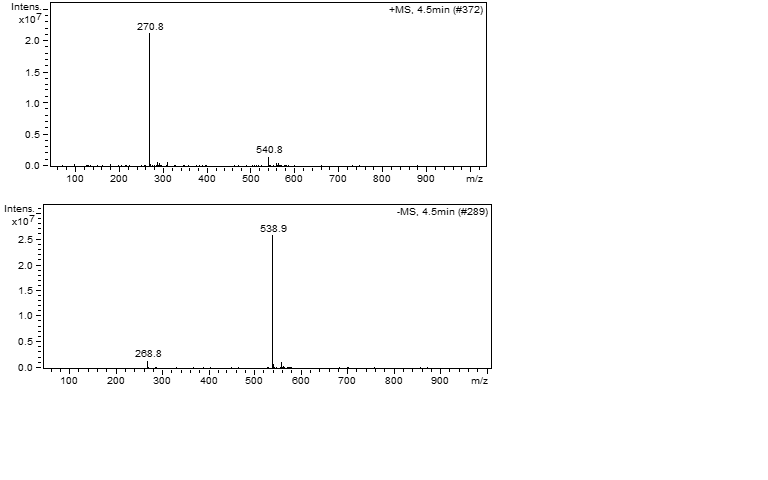 第一张谱图为正离子模式其中,m/z=270.8为[M+1]+,m/z=540.8为[2M+1]+,