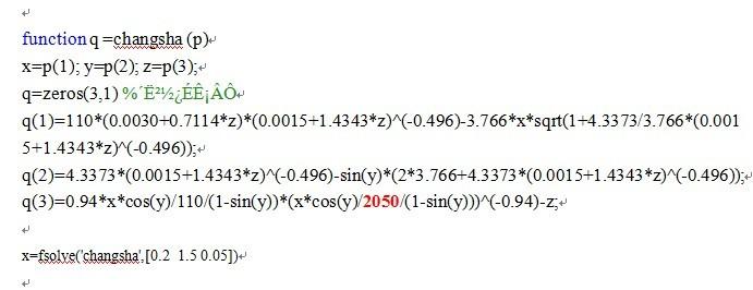 就是:x=fsolve('changsha',[0.2 1.5 0.05]) 初始值的选定不同 得到x y z的结果也不同