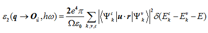 q是第一布里渊区中的矢量,Ou是零矢量,大写Omega是原胞体积。 q的物理意义是电子在跃迁前后准动量的变化量。由于光子的动量远小于电子准动量,电子在跃迁前后动量几乎不变,因此会有q趋近于0。对于这一点,你可以找一个已知晶格常数的晶体算出到倒格式和准动量改变值,再用德布罗意公式算下可见光光子的动量验证下。我记得至少有三个数量级的差距的。 在计算介电函数虚部时,程序会展开K网格,利用K网格中所有K点对应的波函数和本征值,而画能带图时只会考虑高对称线上的K点。因此会出现某个吸收峰找不到对应跃迁的情况。 第二种可能就是楼上所说的。 |