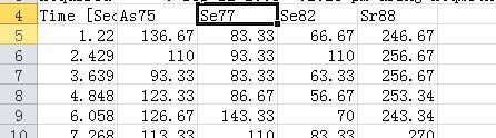 我准备用HPLC—ICP—MS对样品中的Se进行定性定量研究,我在文献中看到在质谱测定中要选择合适的同位素进行测定,文献中是这样描述的:Isotopes monitored 77Se, 78Se, 80Se, 82Se,为什么要测定这些呢?也就是说是为何要选择所测元素的同位素进行测定?还有我现在已有的数据如下,我该怎么去处理? 数据.jpg |
