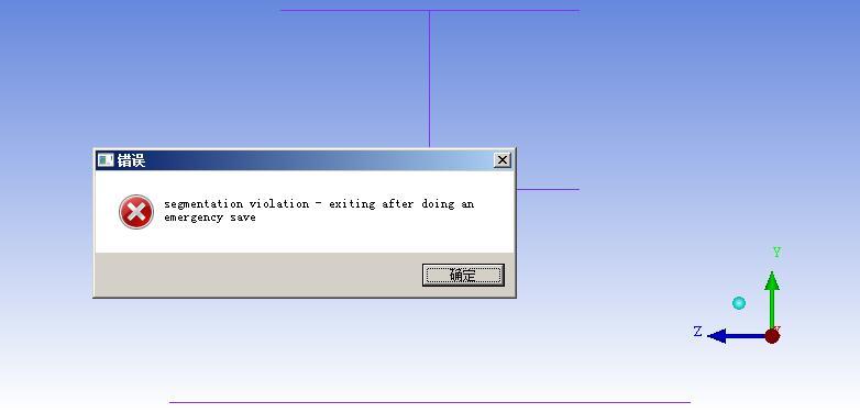 最近在看流沙的ICEM的简明教程,也下载了模型文件x_t格式的。但是导入以后一旦点击坐标轴进行旋转,就会显示错误,错误提示为segmentation violation,请问这是怎么回事呢?如图