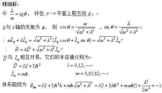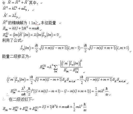 题目见图片 第一小问问题不大 第二小问把握不大。我是将最后那个Ly配方进L^2里面去 了。然后得到能级为 Kl(l+1)h^2+mωh-c c是配方时产生的一个常数。 这样做对吗? [ Last edited by 小虫虫LG on 2013-3-10 at 14:44 ] |